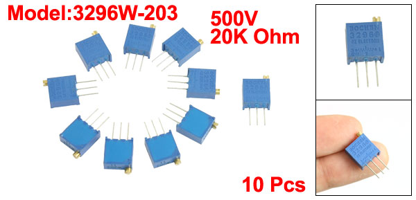 10 Pcs Variable Resistor Trimmer Potentiometer 20K Ohm 3296W