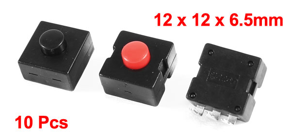 Product Name Torch Push Button Switch Action Type Latching Contact Voltage/ Current AC 250V 1.5A Total Size(Pin No Include) 12 x 12 x 6.5mm/0.47" x 0.47" x 0.3"(L*W*T) Button Diameter 5/0.2" Pin Number 2pin, 3pin, 5pin Material Plastic, Metal Color Black, Red, Silver Tone Net Weight 13g Package Content 10 Pcs x Torch Push Button Switch - Reviews