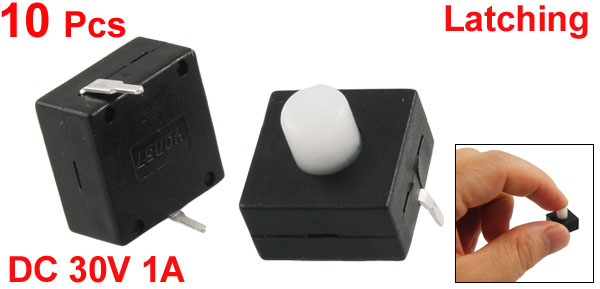 Product Name Torch Push Button Switch Contact Type Latching Contact Voltage/ Current DC 30V 1A Pin Number 2(Double Row) Terminal Driection Vertical Overall Size 12 x 12 x 15mm/ 0.47" x 0.47" x 0.59" (L*W*H) Button Diameter 5mm/ 0.2" Material Plastic, Metal, Electric Parts Color Black, White, Silver Tone Net Weight 12g Package Content 10 x Torch Push Button Switch - Reviews