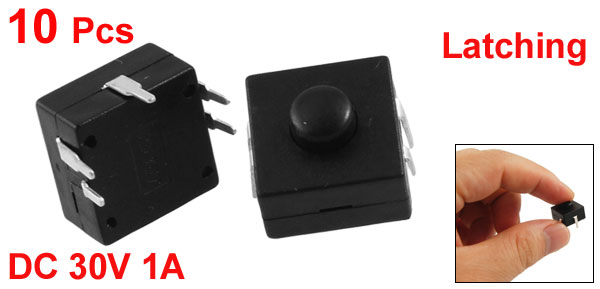 Product Name Torch Push Button Switch Contact Type Latching Contact Voltage/ Current DC 30V 1A Pin Number 5 Terminal Driection Vertical Overall Size 12 x 12 x 12mm/ 0.47" x 0.47" x 0.47" (L*W*H) Button Diameter 5mm/ 0.2" Material Plastic, Metal, Electric Parts Color Black, Silver Tone Net Weight 13g Package Content 10x Torch Push Button Switch - Reviews