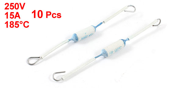 10 Pcs White 250V 15A 200 Celsius Fuses 9cm Long for Electric Rice Cooker
