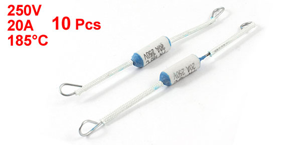 10 Pcs White 250V 20A 185 Celsius Fuses 8cm Long for Electric Rice Cooker