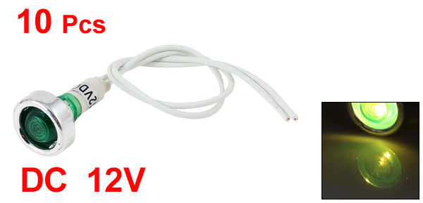 10 Pcs White Cable Blub Type Green Indicator Pilot Light Lamp DC 12V