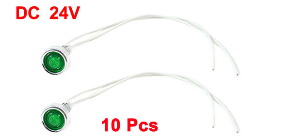 10 Pcs White Cable Green Indicator Pilot Signal Light Lamp DC 24V