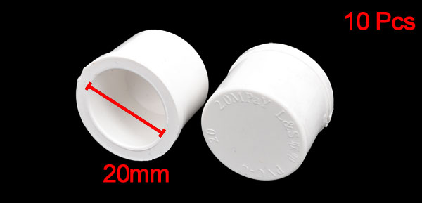 Product Name Pipe End Cap Fit Pipe Outside Dia. 20mm /0.78"(1/2 PT) Overall Size 22 x 21mm / 0.86" x 0.83" (D*H) Inside Depth 17mm / 0.67" Material Plastic Color White Net Weight 83g Package Content 10 x Pipe End Cap - Reviews