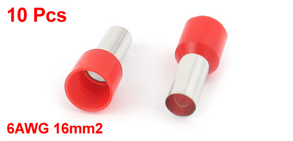 10 Pcs Wire Crimp Connector Terminal Insulated Ferrule Red E16-12 6AWG 16mm2