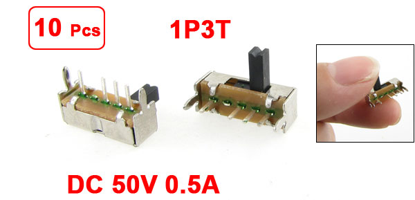 10 Pcs x PCB Mount 4 Pin 3 Position SP3T 1P3T Slide Switch 90 Deg 0.5A 50V DC