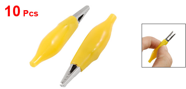 Jaw Open Width 6mm/0.24'' Cable Hole Dia. 3mm/0.12'' Color Yellow, Silver Tone Material Metal, Soft Plastic Weight 22g Package 10 x Electrical Alligator Clips - Reviews
