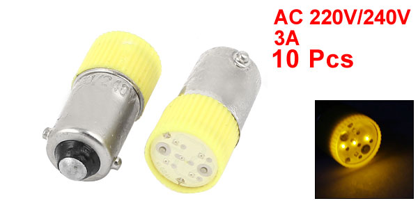 10 Pieces 10mm Round Head Yellow LED Light Signal Indicator Lamp AC 220V/240V 3A
