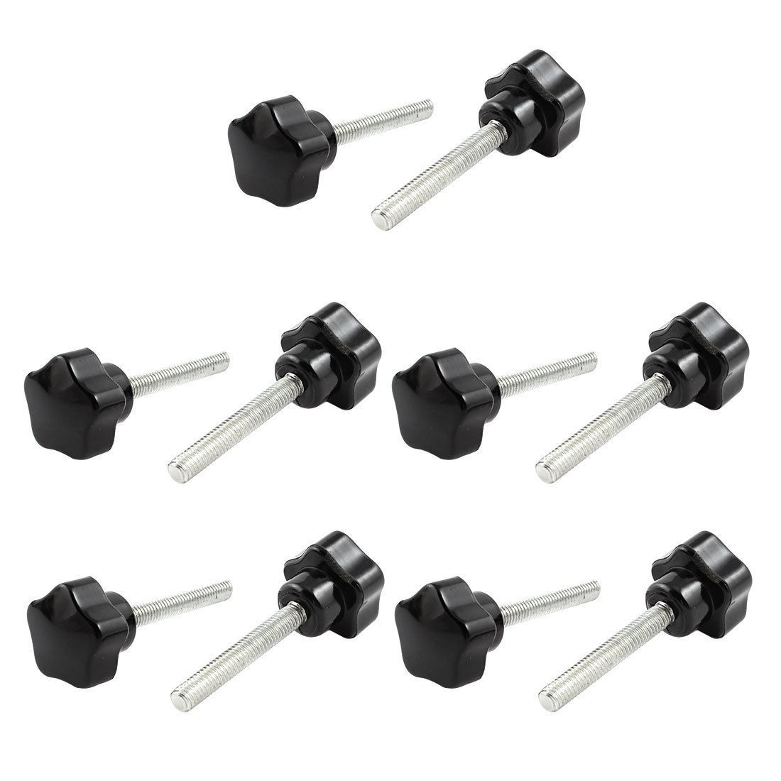 10 Pieces Black M6 x 40mm Male Threaded Knurled Grip Star Knob