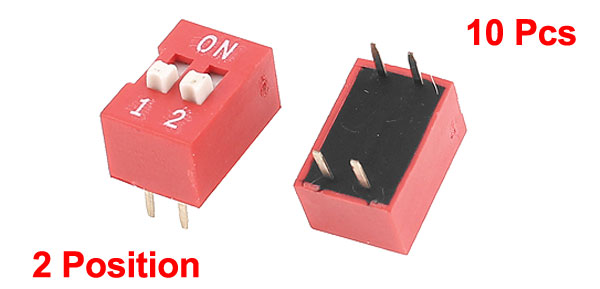 Product Name DIP Switch Type Slide Type Poles 2 Position 4Pin (2Row) Pitch 2.54mm Non-Switching Rating 100mA DC 50V Switching Rating 100mA DC 24V Dimension 10 x 6.5 x 9mm/ 0.39" x 0.26" x 0.35"(L*W*H) Material Plastic, Electric Parts Main Color Red, Gold Tone,White Weight 7g Package Content 10 Pcs x DIP Switches - Reviews