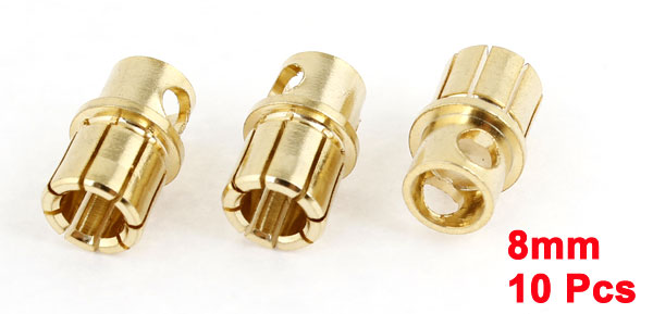 10 Pieces Gold Tone Metal RC Banana Bullet Plug Connector Male 8mm
