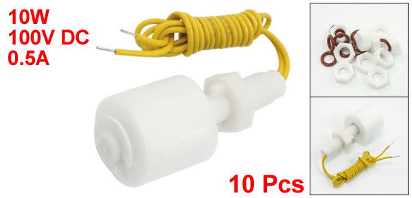 Product Name Water Level Sensor Model No. ZP4310 Max Contact Rating 10W Max Switching Voltage 100V DC Max Switching Current 0.5A Max Breakdown Voltage 220V DC/AC Max Carry Current 1A Max Contact Resistance 100mΩ Temperature Rating -10 / +85 °C Float Ball Material P.P Float Body Material P.P Thread Dia(Approx) 9.5mm / 0.374" Switch Body Size 23.3 x 57.7mm / 0.9" x 2.27"(Max D*H) Cable Length 36cm / 14.2" Color White Net Weight 130g Package Content 10 x Water Level Sensor - Reviews