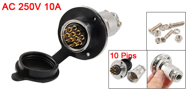10-Pin Waterproof Electrical Deck Plug Circular Cable Connector 10A 10P