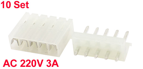 10 Sets AC 220V 3A 3.96mm Spacing 5 Pin Pluggable Terminal Block