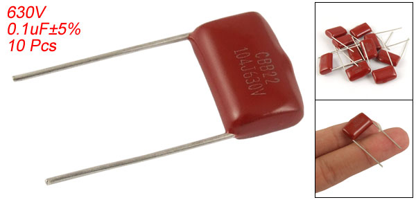 Product Name Metallized Polypropylene Film Capacitor Model CBB22 Dielectric Material Metallized Polypropylene Film Withstand Voltage 630V Capacitance 0.1uF Capacitance Tolerance ±5% Lead Spacing 15mm / 0.59" Total Size (Each) 33 x 16 x 5.5mm / 1.3" x 0.63" x 0.22" (L*W*T) Weight 12g Color As Picture Shown Package Content 10 x Metallized Polypropylene Film Capacitors - Reviews