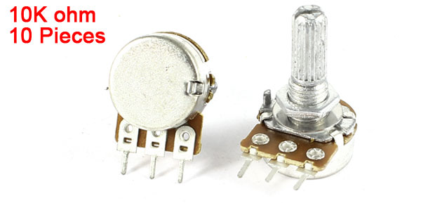 Product Name Potentiometer Resistance Value 10K ohm Power AC 220V 6A Adjustment Type Top Adjustment Type Single Linear(Type B) Features Knurled Shaft Shaft Diameter 6mm / 0.2" Shaft Length 13mm / 0.55" Mounting Thread Diameter 7mm / 0.3" Base Size 16 x 8mm / 0.63" x 0.31"(D*H) Total Height 29mm/1.1" Material Metal, Electronic Parts,Carbon Film Net Weight 70g Package 10 x Potentiometer - Reviews
