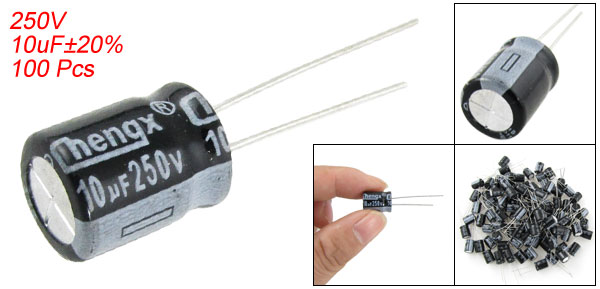 Product Name Aluminum Electrolytic Capacitor Type Radial Lead Maximum Temperature 105°C Withstand Voltage 250V Capacitance 10uF Capacitance Tolerance ±20% Body Size 10 x 13mm / 0.39'' x 0.51'' (D*L) Lead Spacing 7mm / 0.276'' Lead Length 26mm / 1.02'', 20mm / 0.79'' External Material Aluminum Weight 151g Color As Picture Shown Package Content 100 Pcs (±2%) x Electrolytic Capacitors - Reviews