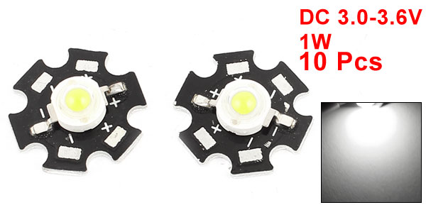 Product Name LED Bead Emitters Intensity Luminous 90LM Color Temperature 6000-6500K Power consumption 1W Voltage DC 3.0-3.6V Material Electronic Parts, Aluminum LED Head Diameter 5mm Total Size 20 x 6mm/0.8" x 0.23"(D*T) Emitter Color Pure White Net Weight 17g Package Content 10 x LED Emitter Bead - Reviews