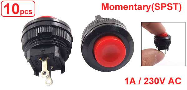 10 x 2 Pin SPST OFF-(ON) N/O Red Cap Momentary Push Button Switch 1A 230V AC