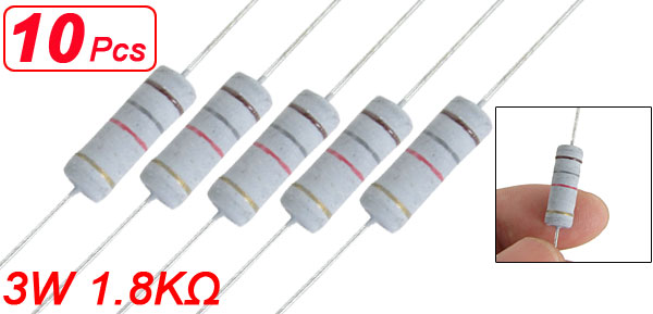 Product Name Metal Oxide Film Resistor Features Axial Lead Power Rating 3W Resistance Tolerance ± 5% Withstand Voltage 500V Resistance 1.8KΩ Lead Diameter 0.5mm / 0.019" Each Size (Approx.) 80 x 5.7mm/ 3.1" x 0.224" (L*D) Color As Picture Show Weight 15g Package Content 10 x Metal Film Resistors - Reviews