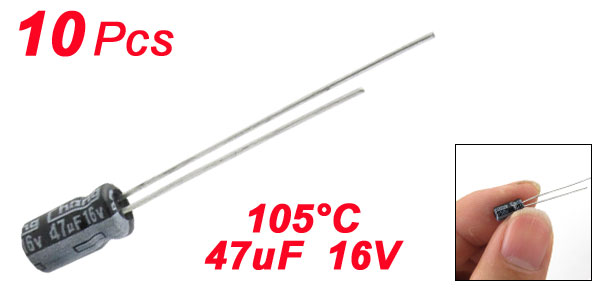 10 x 47uF 16V 105C Radial Electrolytic Capacitor 4x8mm