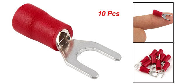 Product Name Furcate Pre Insulating Terminal Design Fork Shape Material Plastic, Metal Wire Size AWG 22-16 Fit Bolt Diameter 4mm/0.16'' Internal Diameter 4mm/0.16'' Tip Width 6mm/0.24'' Total Length 20mm/0.8'' Main Color Red Weight 6g Package Content 10 x Furcate Pre Insulating Terminal - Reviews