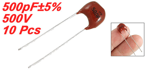 Product Name Mica Capacitor Dielectric Material Mica Capacitance 500pF Tolerance ±5% Withstand Voltage 500V Body Dimension 9 x8 x 3mm/0.35" x 0.3" x 0.1"(W*H*T) Lead Length 27mm/1" Lead Pitch 6mm/0.23" Color As Picture Shown Net Weight 7g Package Content 10 x Mica Capacitors - Reviews