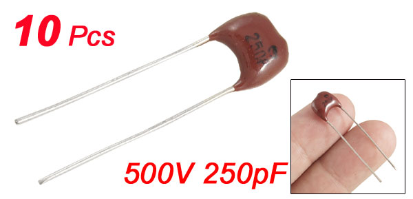 Product Name Mica Capacitor Dielectric Material Mica Capacitance 250pF Tolerance ±5% Rated Voltage 500V Body Dimension 9 x 7x 2mm/0.35" x 0.27" x 0.07"(W*H*T) Lead Length 27mm/1" Lead Pitch 7mm/0.27" Color As Picture Shown Net Weight 6g Package Content 10 x Mica Capacitors - Reviews