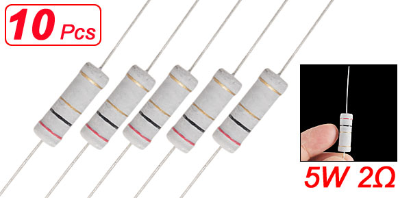 Product Name Metal Oxide Film Resistor Features Axial Lead Power Rating 5W Resistance Tolerance ± 5% Withstand Voltage 700V Resistance 2Ω Lead Size (Each End) 29 x 0.7mm / 1.1" x 0.028"(L*D) Body Size 24 x 6mm / 0.9" x 0.2" (L*D) Color As Picture Show Weight 37g Package Content 10 x Metal Film Resistors - Reviews