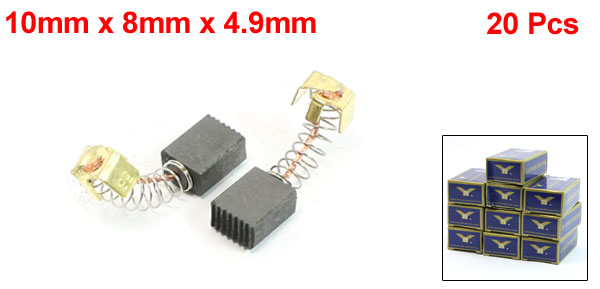 Product Name Carbon Brush Carbon Brush Size (Approx) 10 x 8 x 4.9mm / 25/64" x 5/16" x 3/16"(L*W*T) Wire Length 20mm / 0.8" Material Carbon, Metal Main Color Dark Gray Net Weight 69g Package Content 20 Pcs x Carbon Brush - Reviews