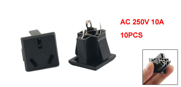 10 x AC 125V 15A 3 Terminals AU 3 Pin Power Socket Connector Black