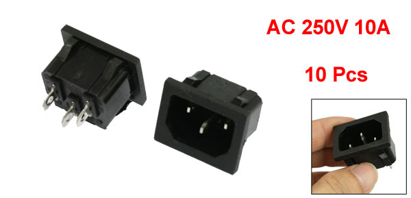 Product Name Power Socket Material Plastic, Metal Main Color Black Power Supply AC 250V 10A Plug Type IEC320 C14 Terminals Quantity 3 Mounting Size 2.5 x 2.3cm/ 1" x 0.9"(L*W) Total Size 3 x 2.3 x 3cm/ 1.2"x 0.9" x 1.2"(L*W*H) Weight 74g Package Content 10 Pcs x Power Socket