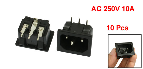 Product Name Power Socket Material Plastic, Metal Main Color Black Power Supply AC 250V 10A Plug Type IEC320 C14 Terminals Quantity 3 Mounting Size 2.9 x 2.5cm/ 1.1" x 1"(L*W) Total Size 3 x 2.3 x 2.3cm/ 1.2"x 0.9" x 0.9"(L*W*H) Weight 89g Package Content 10 Pcs x Power Socket