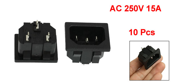 Product Name Power Socket Material Plastic, Metal Main Color Black Power Supply AC 250V 15A Plug Type IEC320 C14 Terminals Quantity 3 Mounting Size 2.7 x 2.4cm/ 1.1"x 0.9"(L*W) Total Size 3 x 2.3 x 2.5cm/ 1.2"x 0.9" x 1"(L*W*H) Weight 79g Package Content 10 Pcs x Power Socket