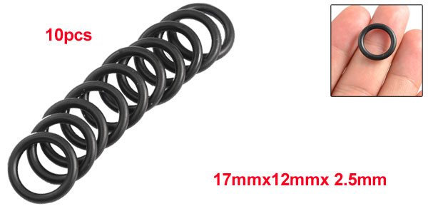 Product Name O Ring Material Rubber Outside Diameter(Approx.) 17mm/ 0.67" Inside Diameter(Approx.) 12mm/ 0.47" Thickness(Approx.) 2.5mm/ 0.098" Color Black Weight 4g Package Content 10 x Rubber O Ring - Reviews