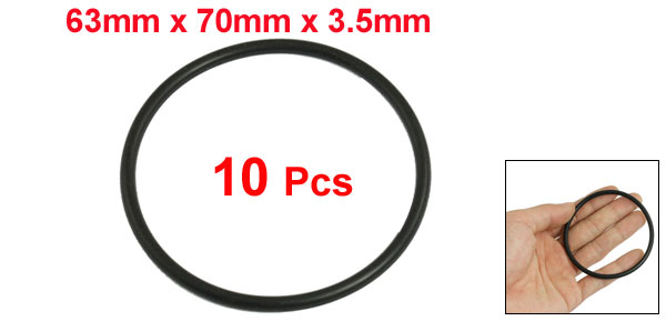 Product Name O Ring Material Nitrile Rubber(NBR) Ouside Diameter 70mm / 2.755" Inner Diameter 63mm / 2.48" Thickness 3.5mm/ 0.137" Color Black Weight 30g Package Content 10 x NBR O Ring - Reviews
