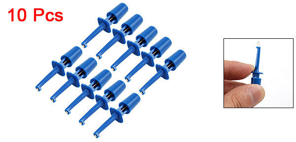 10 x Blue Plastic Multimeter Test Cable SMD IC Hook Clip Grabbers 1.6"