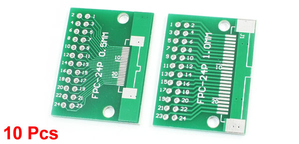 Product Name PCB Board Adapter Type FPC-24P 0.5mm/1mm to 2.54mm Pin Number 24 Pin Pin Pitch 2.54mm Fixing Hole Dia 3mm/0.12" Fixing Hole Center Distance 28mm/1.1" Thickness 1.5mm/0.06" Body Size 34 x 26mm/1.3" x 1.1"(L*W) Material Glass Fiber, Electronic Part Main Color Green Net Weight 30g Package Content 10Pcs x PCB Board Adapter - Reviews
