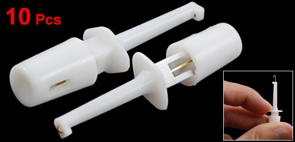 10 x Plastic Multimeter Test Cable SMD IC Hook Clip Grabbers White 1.6"