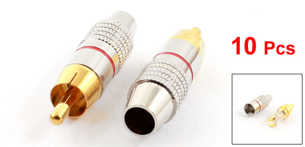 10 x RCA Male Plug Non Solder AV Cable Locking Connector Gold Silver Tone