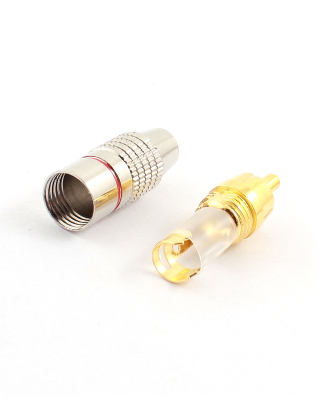 Product Name RCA Plug Connector Type RCA Male Plug Size 4.3 x 1.1cm/1.7" x 0.43" (L*Max.D) Hole Diameter 6.6mm/0.26" Material Metal Color Gold Tone, Silver Tone Net Weight 76g Package Content 10 x RCA Plug Connector - Reviews
