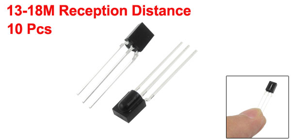 Product Name Infrared Remote Control Receiver Module Model Number PIC-1738 Working Voltage 2.7V-5.5V Reception Distance 13-18M Body Size 7 x 5.4 x 4.5mm / 0.28" x 0.21" x 0.18"(L*W*T) Pin Length 21mm / 0.8" Pin Pitch 2.5mm / 0.1" Material Plastic, Alloy Color Black, Silver Tone Weight 4g Package Content 10 Pcs x Infrared Remote Control Receiver Modules - Reviews