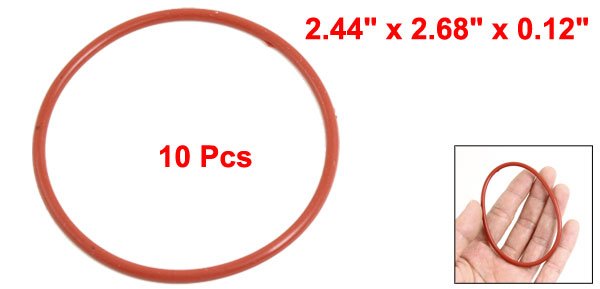 Product Name Rubber O Ring Material Rubber Inside Diameter 62mm / 2.44" Outside Diameter 68mm / 2.68" Thickness 3mm / 0.12" Color Red Weight 19g Package Content 10 x Rubber O Rings - Reviews