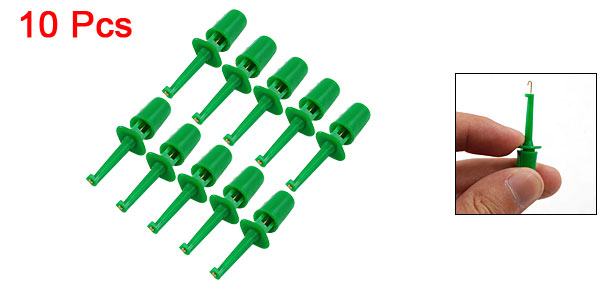 10 x Spring Loaded SMD IC Test Hook Clip Green for Multimeter Lead Cable