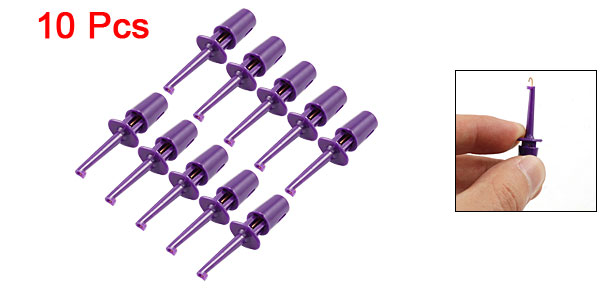 10 x Spring Loaded SMD IC Test Hook Clip Purple for Multimeter Lead Cable