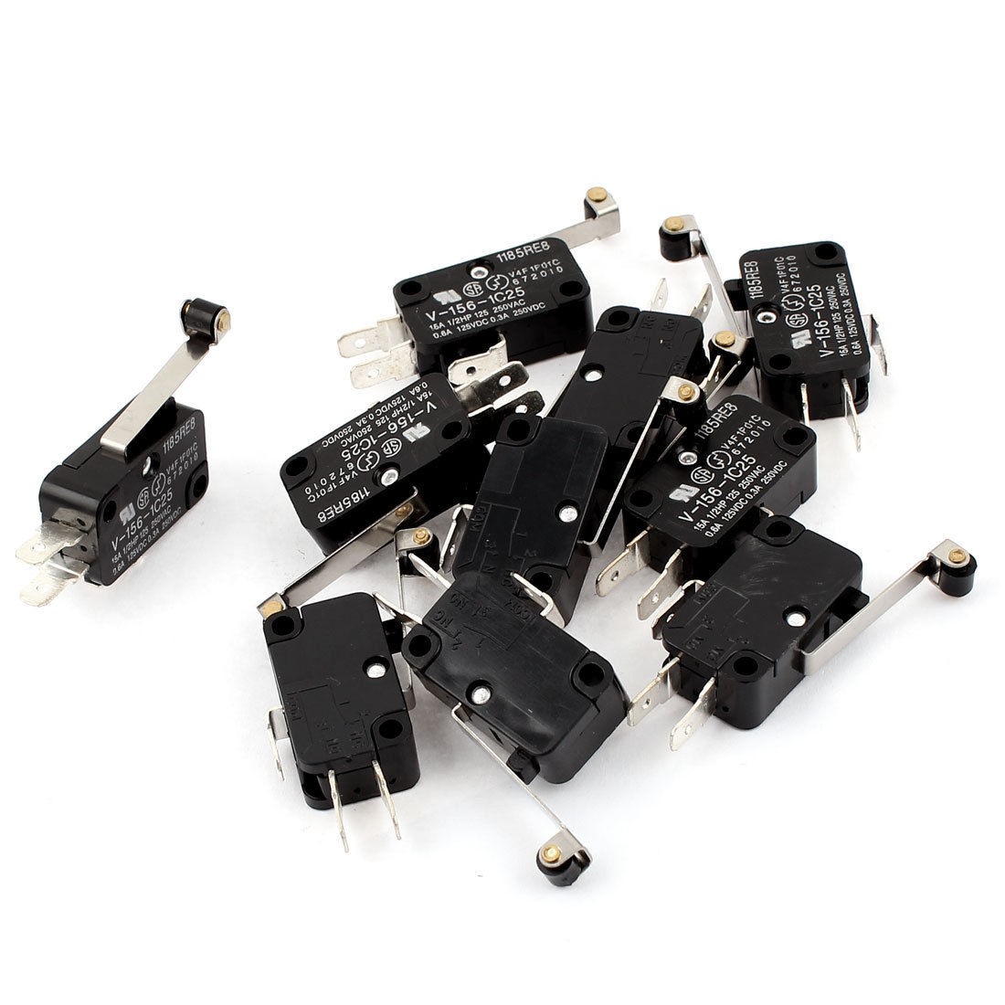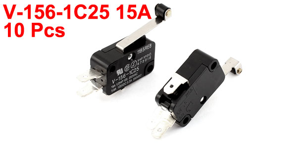 10 x V-156-1C25 SPDT NO NC Momentary Roller Lever Limited AC DC Micro Switch 15A