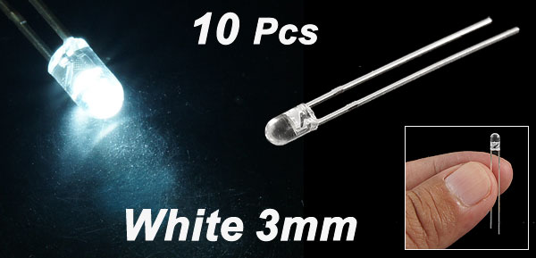 10 x White LED 3mm Round Head DIP Light Emitting Diodes