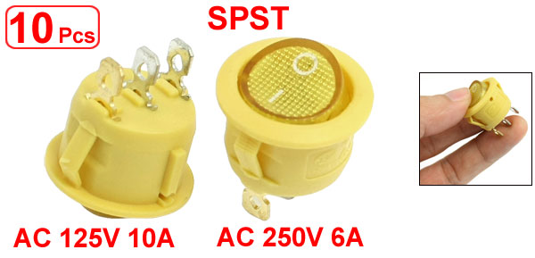 10 x Yellow Indicator Light 3 Pin SPST ON OFF Rocker Boat Switches
