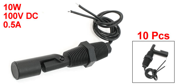 Product Name Floating Switch Model No. ZPC3 Max Contact Rating 10W Max Switching Voltage 100V DC Max Switching Current 0.5A Max Breakdown Voltage 220V DC Max Carry Current 1A Max Contact Resistance 100mΩ Temperature Rating -10 / +85 °C Material Plastic, PP Thread Dia(Approx) 20mm / 0.79" Thread Length 45mm / 1.77" Switch Total Length 105mm / 4.1" Cable Length 34cm / 13.4" Color Black Net Weight 280g Package Content 10 x Floating Switch - Reviews